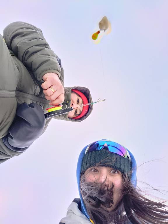 Il s´agît de la Pêche sous glace. Pour ceux qui voudront s' y essayer, nous vous guiderons sur nos meilleurs spots pour vous faire découvrir, cette activité étrange où il faut faire des trous avant d'aller à la pêche et se rendre compte des épaisseurs de glace incroyables.