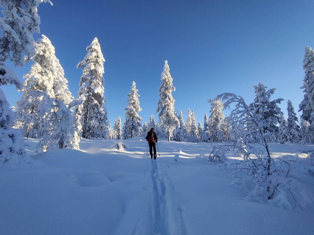 Les épaisseurs de neige sont telles par ici que sans eux rien n'est vraiment possible si l'on veut s'éloigner des routes ou pistes ; Plus simplement, l'outil idéal pour randonner dans les forêts de Laponie en neige poudreuse et obtenir sa dose de Fun en descente.
